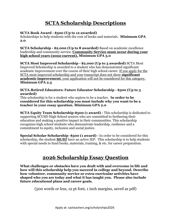 For more information and to apply please visit: sacteachers.org/scholarships2026